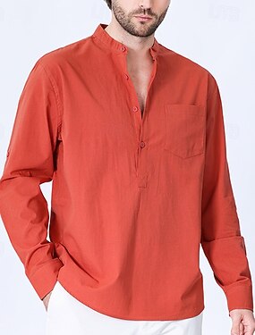Homens Camisa Social Camisa de colarinho de banda Camisa Popover Camisa casual Preto Branco Amarelo Vermelho Azul Marinha Manga Longa Tecido Henley Diário Para Noite Bolso frontal Roupa Elegante Moda