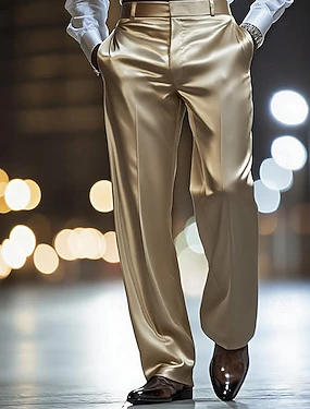 Homens Calças Social Como seda Calças de cetim Calças largas Bolsos Perna reta Tecido Respirável Comprimento total Casamento Festa O negócio Moda Roupa de rua Branco Dourado Micro-Elástica