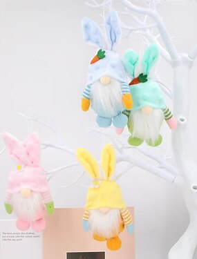 Enfeites de Páscoa para Cesta de Páscoa 4 Pçs Gnominhos de Coelho Suspensos Decorações de Páscoa para Casa Ornamentação de Tomte de Primavera com Orelhas de Coelho Decoração de Árvore de Páscoa
