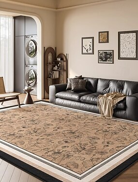 Tapete estilo vintage francês, carpete durável e fácil de cuidar para sala de estar ou quarto, tapete grande e elegante para sofá, decoração de casa resistente à sujeira