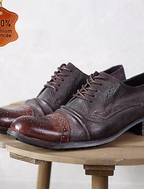 Sapatos sociais oxford masculinos de couro legítimo – sapatos sociais vintage brogue com cadarço e bico fino para escritório, casamento e eventos noturnos