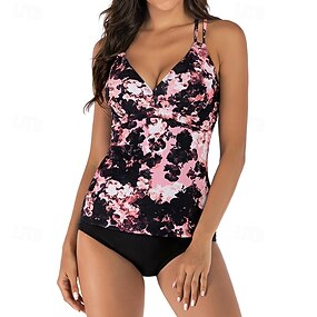 Mulheres Roupa de banho Tankini 2 Peças Estampado Perna curta Secagem Rápida Elástico Sem Manga Roupa de Banho roupa de banho Surfe Praia Natação Verão