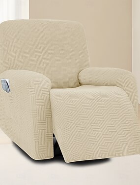 Capa para cadeira reclinável de 1 lugar com design de grade 5x5 - capa elástica com encosto baixo e detalhes de asa para sala de estar ou sala de estar