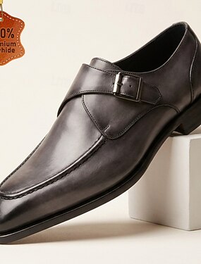 Sapatos sociais masculinos marrom-escuros com fivela e design elegante de bico liso, sapatos formais de couro sofisticados para homens de negócios e cavalheiros, ideais para o escritório, casamentos, banquetes e ocasiões especiais.