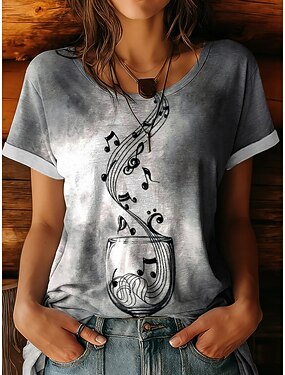 Mulheres Camiseta Imprimir Floral Gráfico Geométrica Vintage à moda Clássico Manga Curta Gola Redonda Decote Redondo Tops regulares Casual Diário Amarelo Cinzento Verão Primavera