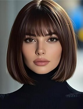 Peruca curta estilo bob, peruca bob reta com franja, peruca bob reta com franja de 30 cm, perucas curtas de fibra sintética estilo bob para mulheres com aparência natural para uso diário (castanho