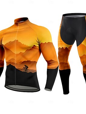 Homens Calça com Camisa para Ciclismo Manga Longa Inverno Outono Laranja Gráfico Nuvem Padrão Moto Térmico / Quente Tapete 3D Secagem Rápida Design Anatômico Resistente Raios Ultravioleta Esportes