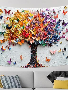 Tapeçaria colorida com arte de árvore, vibrante e inspirada na natureza, para pendurar na parede em tecido decorativo na sala de estar, quarto, dormitório e como ideia para presente.