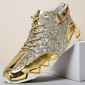 tênis masculino de cano alto dourado e branco com detalhes brilhantes – estilosos e ousados, perfeitos para festas, noites da moda e looks da moda