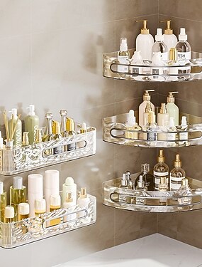 suporte de parede para banheiro, organizador de parede sem furadeiras para banheiro, organizador de cosméticos transparente para produtos de higiene pessoal e itens essenciais do dia a dia