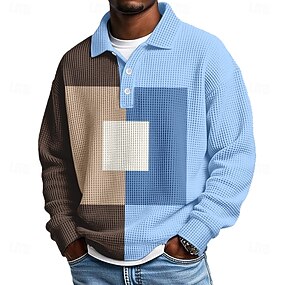 Homens Bloco de cor Geométrico Camisas Polo Waffle Textura Manga Longa Camisas polo Lapela Casual Roupa Esportiva Roupa Diária Impressão 3D Primavera Outono Inverno Azul Marinha Azul Céu Verde