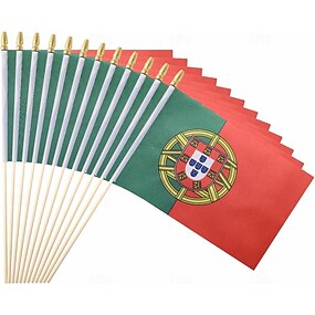 Pacote com 25 miniaturas de bandeiras portuguesas para segurar em varetas, medindo 12,7 x 20,3 cm (5 x 8 polegadas), ideais para jogos da Copa do Mundo de Futebol, eventos esportivos, decoração de