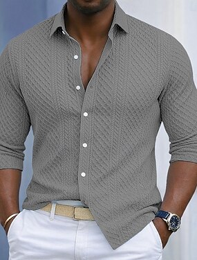 Homens Camisa Social Camisa casual camisa de botão Camisa Jacquard Preto Branco Caqui Cinzento Azul Claro Manga Longa Tecido Colarinho de Camisa Casual Diário Roupa Elegante Moda Casual