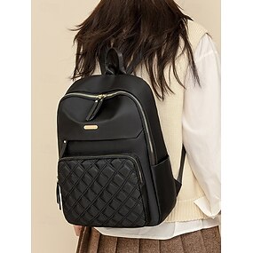 Mochila feminina de nylon acolchoado - mochila estilosa bege com zíperes dourados, design com vários compartimentos, perfeita para uso diário, escola ou viagens