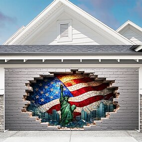 Capa para porta de garagem comemorativa do 250º aniversário dos EUA, impressão 3D com ilusão de ótica da Estátua da Liberdade e da bandeira americana, decoração patriótica para a celebração do semiquincentenário e o Dia da Independência (4 de julho).