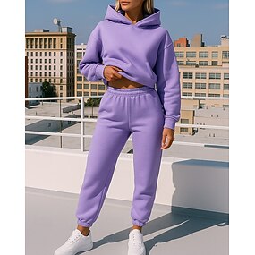 Mulheres Agasalho de 2 peças Moletom Lounge Hoodie Conjuntos de moletom Cor Sólida Conjuntos Outono Preto Branco Exercite-se Exterior Viagem Cintura Alta Leve Da Moda Manga Longa Esporte Roupas