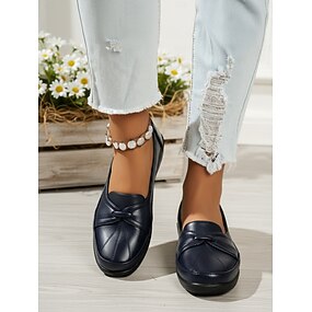 Mocassins Femininos Azuis Macios com Detalhe de Nó – Confortáveis Sapatos Slip-On para Direção Trabalho de Escritório Caminhadas Casuais e Uso Diário