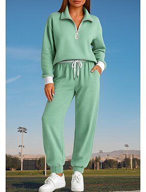 Natal Mulheres Moletom Agasalho de 2 peças Conjuntos de moletom Com Cordão Zip Up Conjuntos Outono Preto Vocação Exterior Viagem Leve Da Moda Manga Longa Esporte Roupas Esportivas Com Stretch Normal