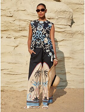 Top de férias de cetim sedoso com estampa de palmeiras em uma noite de verão