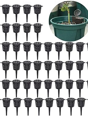 Conjunto de 50 cestos de plástico resistente para fertilizantes, com tampa em forma de cúpula - liberação automática de nutrientes, drenagem na parte inferior, vasos empilháveis para cultivo