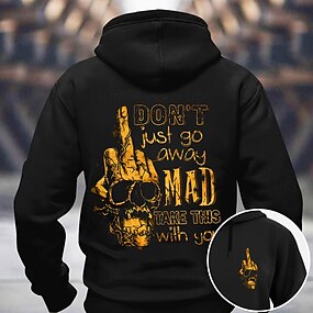 Moletom Masculino Edgy "Eu Não Apenas Vou Embora Bravo Leve Isso Com Você" Slogan Gráfico com Impressão de Dedo Médio e Caveira Manga Longa
