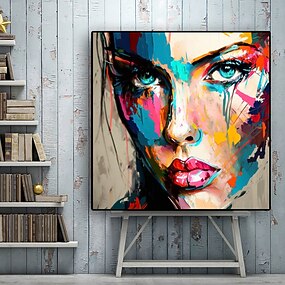 Confeccionada à Mão Pintura a Óleo Pintados à mão Quadrada Abstrato Pessoas Moderno Tela enrolada (sem moldura)