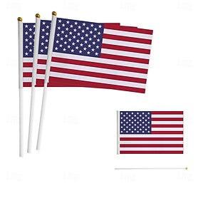 Conjunto de 100 bandeiras dos Estados Unidos com mecanismo de manivela, bandeira do Dia da Independência, em poliéster com mastro.