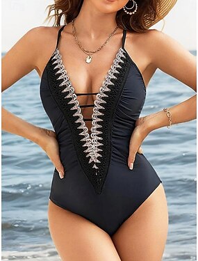 Maiô Feminino 1 Peça Modelador Com Prega Sexy Recorte Monokini Controle de Barriga Cintura Alta Slim Costas Nuas Moda de Férias Praia Cor Sólida Decote V Sem Mangas