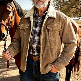 Homens Jaqueta de Inverno Jaqueta de Veludo Casaco de lã Jaqueta casual Férias Diário Térmico / Quente Bolsos Tosão Outono Inverno Tecido Moda Roupa de rua Lapela Padrão Preto cáqui Café Cinzento