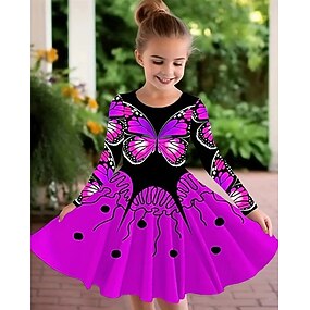 Meninas 3D Gráfico Borboleta Vestido Manga Longa Verão Primavera Férias Diário Feriado Princesa Lindo Doce Infantil 4-12 anos Vestido casual Vestido A Line Altura dos Joelhos Normal