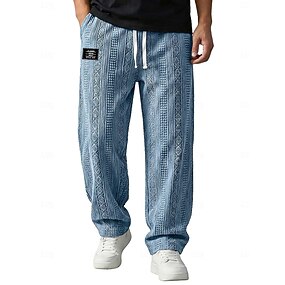 Homens Calças Calça casual Calças largas Calças texturizadas Jacquard Com Cordão Perna reta Tecido Conforto Comprimento total Casual Diário Ao ar livre Férias Moda Azul Preto Micro-Elástica