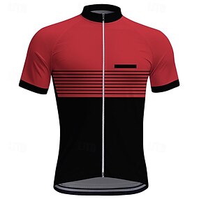Homens Camisa para Ciclismo Riscas Manga Curta Moto Camiseta Blusas com 3 bolsos traseiros Ciclismo de Montanha Ciclismo de Estrada Secagem Rápida Zíper Frontal Capilaridade Esportes Branco Vermelho