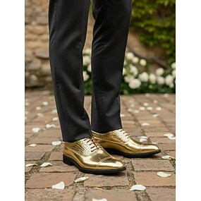 Homens Sapatos sociais Pele PU Confortável Antiderrapante Respirável Com Cadarço Preto Dourado Outono Inverno