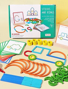 Conjunto de construção criativa com varetas e anéis - brinquedo Montessori STEM para crianças - desenvolvimento da coordenação motora fina &jogo de reconhecimento de formas