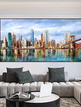 grande pintura de paisagem de nova york pintada à mão grande pintura de arte urbana arte de parede urbana feita à mão arte de parede de nova york pintura de arte de cidade pintura de cidade pintada à