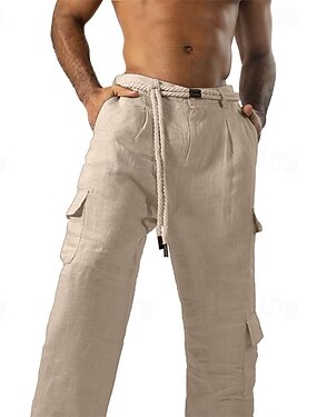 Homens Calças Cargo Calças Cintura elástica Com Cordão Bolso multi Bloco de cor Vestível Ao ar livre Diário Acampar e Caminhar Moda Clássico Branco Vinho