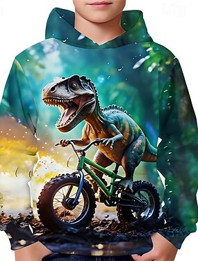 Para Meninos 3D Gráfico Dinossauro Moletom Pullover Manga Longa Impressão 3D Primavera Outono Esportes Moda Roupa de rua Infantil 4-12 anos Com Capuz Ao ar livre Casual Diário Normal