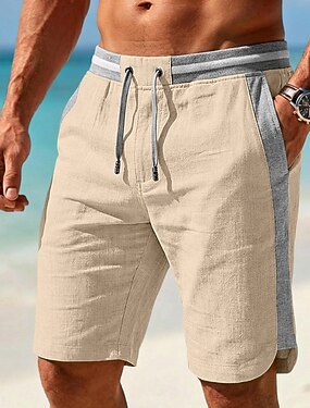 Homens Shorts de linho Shorts de verão Shorts de praia Com Cordão Bolsos Listra lateral Bloco de cor Cor Única Conforto Respirável Comprimento do joelho Casual Diário Praia Férias Moda Azul Cáqui Sem