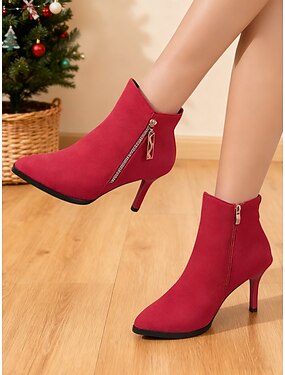 Botas de cano curto femininas de camurça com salto alto e zíper lateral - botinhas chiques de bico fino para festas e baladas. &trajes de noite