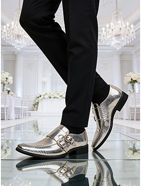 Sapatos masculinos verdes de verniz com estampa de pele de cobra e fivela dupla - calçado formal elegante para eventos sofisticados e casamentos.