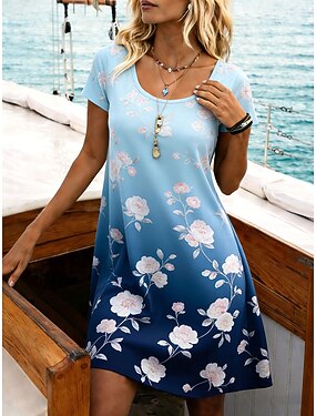 Mulheres Minivestido Vestidos Para o Verão Vestido T shirt Vestido A Line Vestido de verão Férias Casual Diário Praia Feriado Normal Âmbar Floral Gráfico Manga Curta Gola Redonda Azul Roxo Laranja