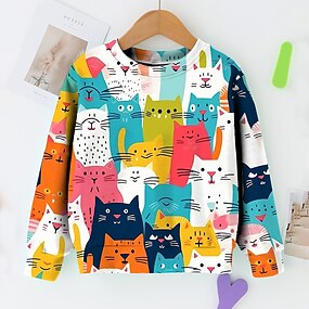Para Meninas 3D Gráfico Desenho Animado Gato Moletom Manga Longa Impressão 3D Verão Outono Moda Roupa de rua Adorável Infantil 3-12 anos Ao ar livre Casual Diário Normal