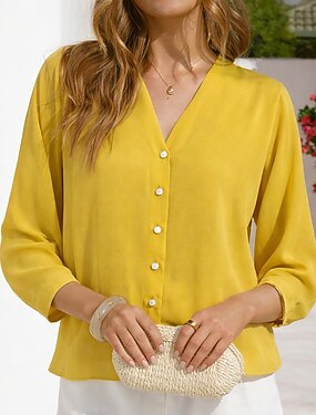 Blusa feminina 100% algodão, camisa com botões, cor lisa, elegante, básica, casual, manga longa, gola, blusas de tamanho padrão, para uso diário, nas cores azul, branca, amarela, rosa e verde, para primavera e outono.