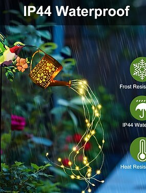 Luminária solar de LED para jardim, pátio externo, com efeito de jarro de água em cascata, gancho duplo e à prova d'água. Ideal para decoração de jardins, gramados, caminhos, varandas e terraços.