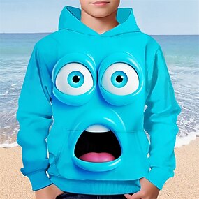 Moletom com capuz estampa 3D para meninos, estampa engraçada com sorriso, manga longa, moda outono inverno, streetwear, crianças de 4 a 12 anos, com capuz, casual, para atividades ao ar livre, ajuste