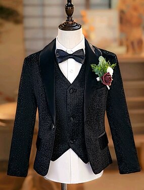 Terno de Pajem Para Meninos Infantil Terno Blazer e colete e calças e camisa e gravata Casual Ao ar livre Festa Moda Legal Básico Côr Sólida Paetês Bolsos Botões Preto Polyester