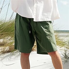 Homens Shorts de linho Shorts de verão Shorts de praia Bolsos Com Cordão Cintura elástica Tecido Conforto Respirável Curto Feriado Férias Praia Havaiana Boho Exército verde Preto