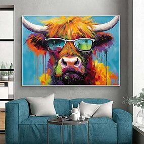 pintura a óleo artesanal lona arte da parede decoração animal moderno bonito dos desenhos animados cores iaque porco veado para decoração de casa rolou pintura sem moldura não esticada