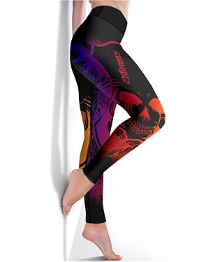 Mulheres Leggings Sports Gym Leggings Calças de ioga Elastano Roxo Leggings Cortadas Caveiras Compressão abdominal Butt Lift Roupas Ioga Ginástica Treino de Ginástica Corrida / Elasticidade Alta