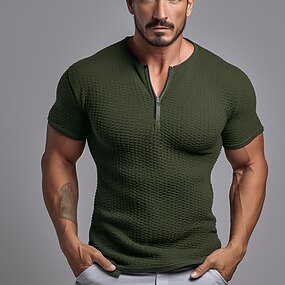 Homens Camiseta Waffle T-shirt Manga Curta Quarter Zip Verão Tecido Moda Designer Básico Zip Up Férias Rua Para Noite Preto Branco Azul Marinha Top Tee para Homens